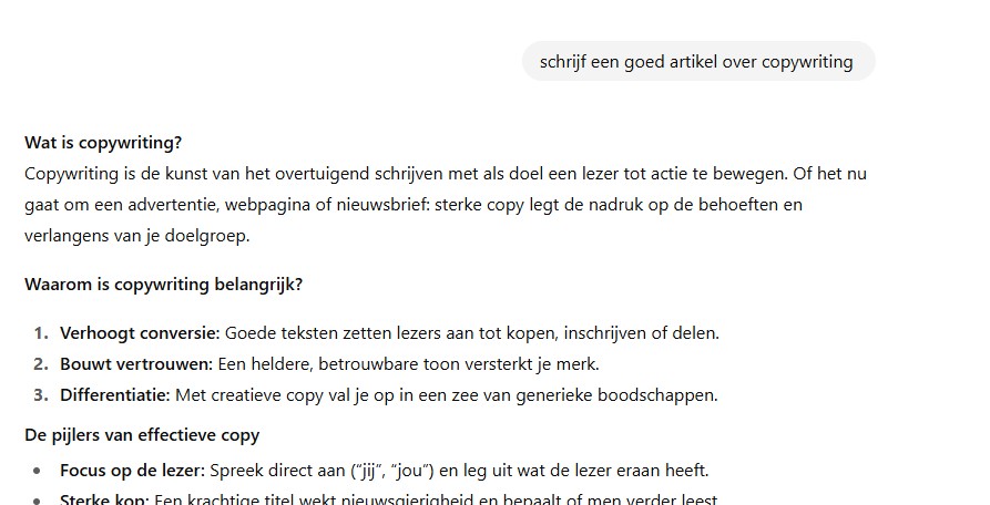 Ter illustratie. Ik zette ChatGPT expres op legacymodel 4o voor deze belabberde output.